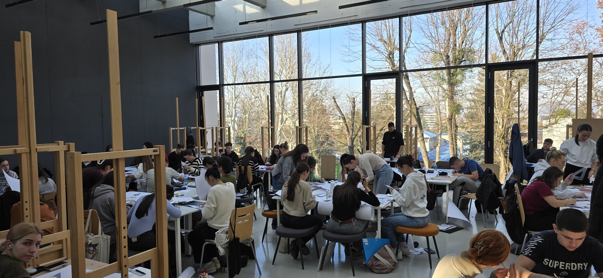 Oglasna pločaAktuelnostiArhitekturaNovosti i obavještenjaSavez Studenata AGGFRadionice i izložbeStudio projekta 1 - Čovjek i prostor - OA19SP1U okviru nastave na predmetu Studio projekat 1, na segmentu Likovna forma, danas 12.decembra 2025 godine održana je radionica pod nazivom „Platonova tijela“, koju realizuje prof. mr Maja Dodig. Radionica je osmišljena kao uvod u temelje oblikovanja i vizuelnog razmišljanja, i namjenjena je studentima prve godine studija arhitekture.